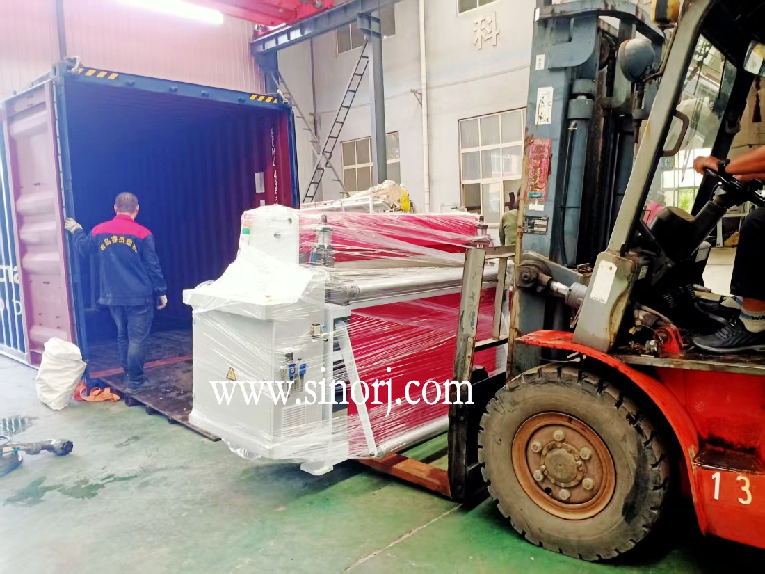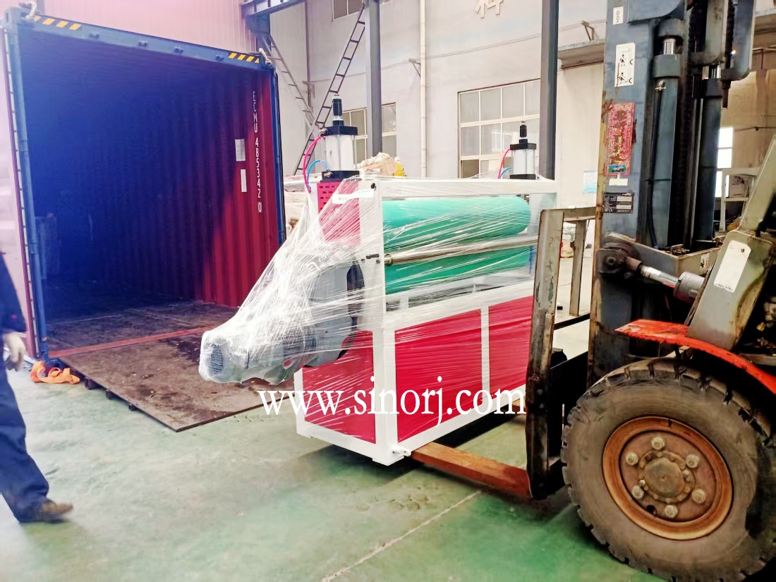 發(fā)往南美的lvt地板生產(chǎn)線spc地板設(shè)備裝柜中